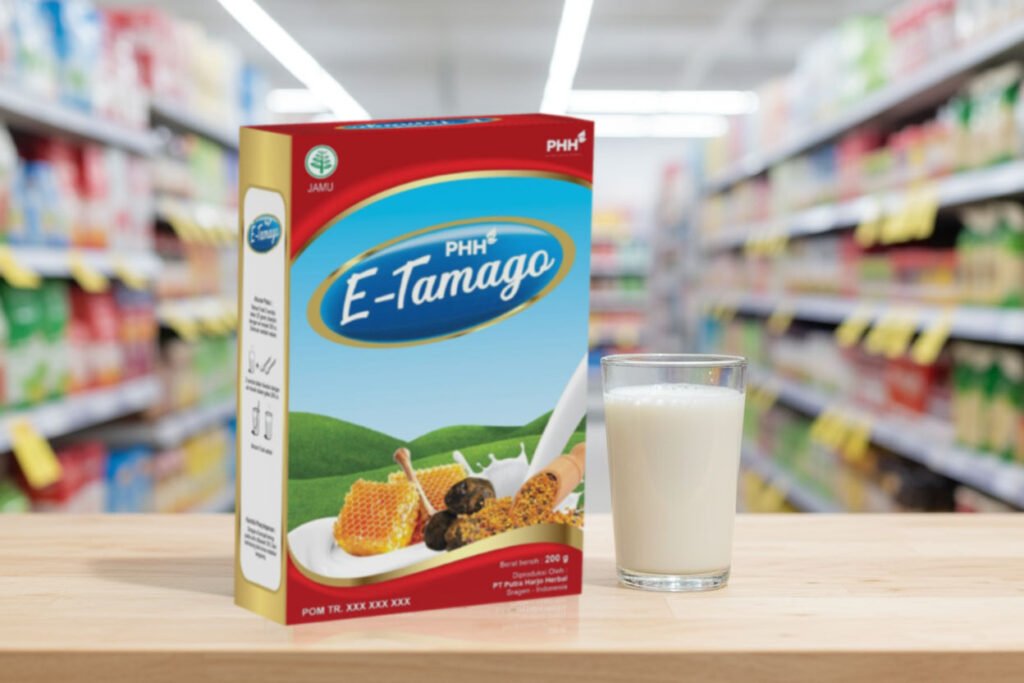 E-Tamago merupakan nutrisi pendamping berbahan dasar susu kambing etawa yang dikombinasikan dengan herbal, diformulasikan untuk membantu melengkapi kebutuhan nutrisi anak, terutama bagi anak yang mengalami kesulitan menaikkan berat badan.